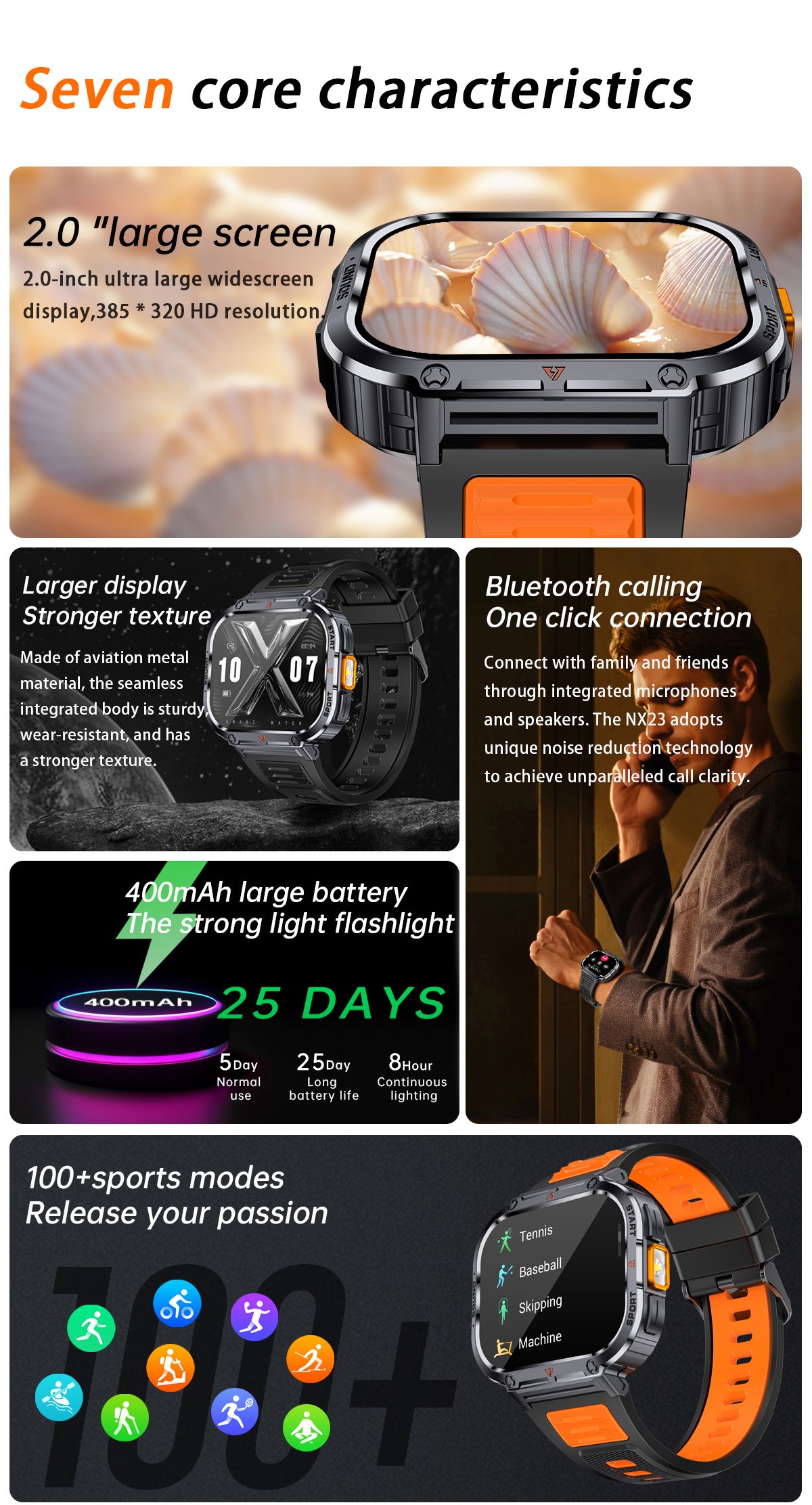 iSEN Smartwatch iSEN NX23, Negru, 2.0" HD, HRV, ECG, Functii Sanatate, Functii sport, Bluetooth Call, Control muzica, Flashlight, 400 mAh, Compatibil iOS & Android