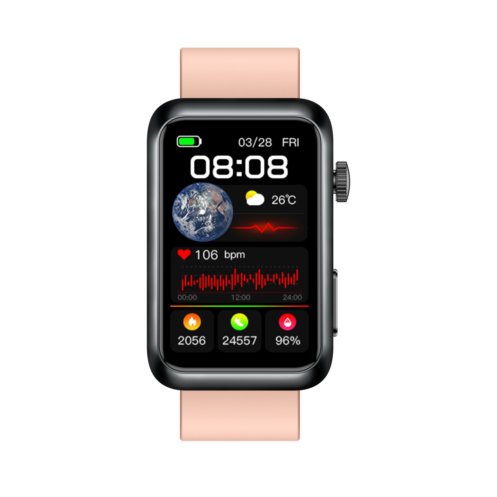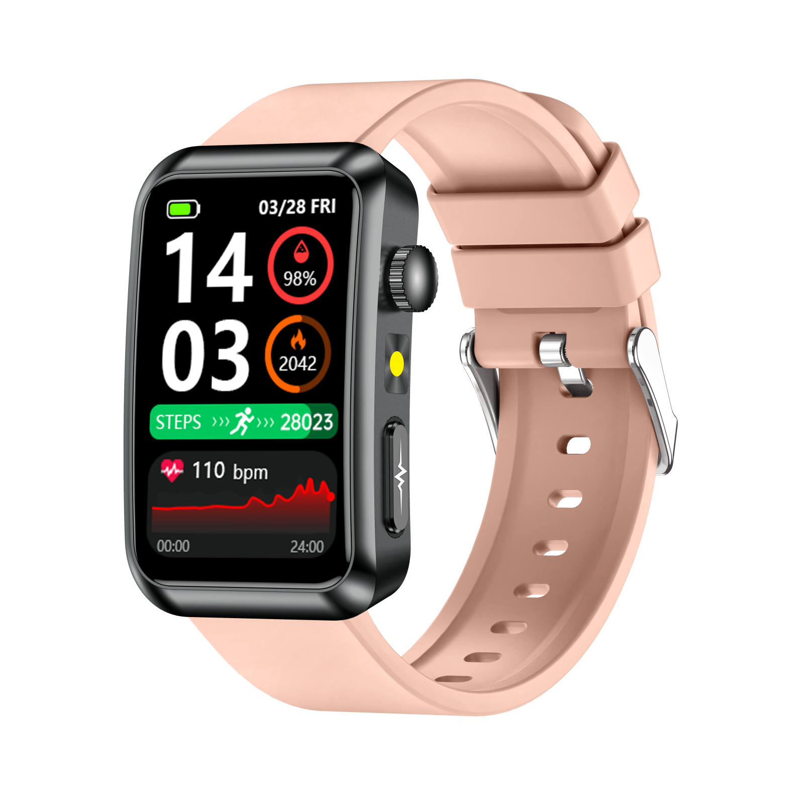 Smartwatch iSEN TK77 Roz, Silicon, 1.57" HD, ECG, Micro-Examinare, Risc Glicemie, Acid Uric & Lipide, Apel BT, Asistent Vocal, Lanterna, SOS, 250mAh